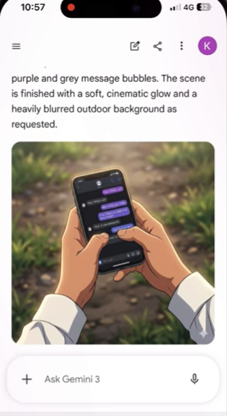 1. Upload your portrait again into Gemini and generate a third-person side profile (phone in hand) using the prompt below.